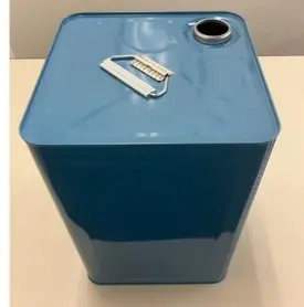さて、弊社製品容器として使用しております18L石油缶『No.50ラミネート缶青』につきまして、下記の通り変更させていただく運びとなりました。