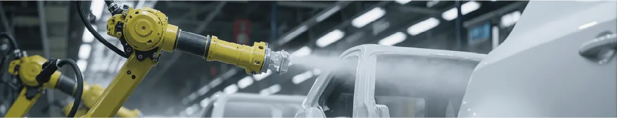 | 自動車業界では、塗装工程で使用される治工具や塗装ロボットスーツなどに付着した硬化塗料・未硬化塗料の洗浄・剥離で国内外の多くの工場で当社製品が使われています。その実績から、低VOC化や省エネルギー化といったご相談に対応したり、電子化・軽量化が進む将来の自動車に対応した新たな開発テーマに取り組んだりと、自動車の発展を陰から支え続けています。 | |